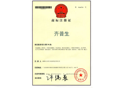 齊普生商標(biāo)注冊證